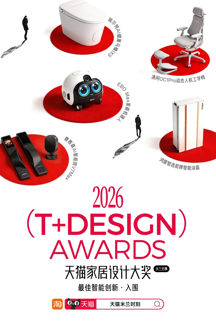 米兰现场,天猫还联合《安邸AD》启动“T+ Design Awards天猫家居设计大奖”,中国当代艺术家与设计师蒋琼耳,十上建筑创始人、明星设计师陈暄,超集建筑创始人、明星设计师Tiffany SHI,Cibic Workshop创始人 Aldo Cibic作为媒体特邀评审,与《安邸AD》品牌总监路遥、天猫家装总经理冬一共同组成了来自不同领域的评审团。入围品牌涵盖梵几、可纳、吱音、Monblari、各各沃、鹿客、箭牌、清闲、瑞尔特、EBO等行业头部与新锐力量。这次奖项启幕,成为天猫扶持原创设计、构建肥沃创作土壤的实质性一步——让好设计被世界看见,也让好产品在全球市场产生回响。